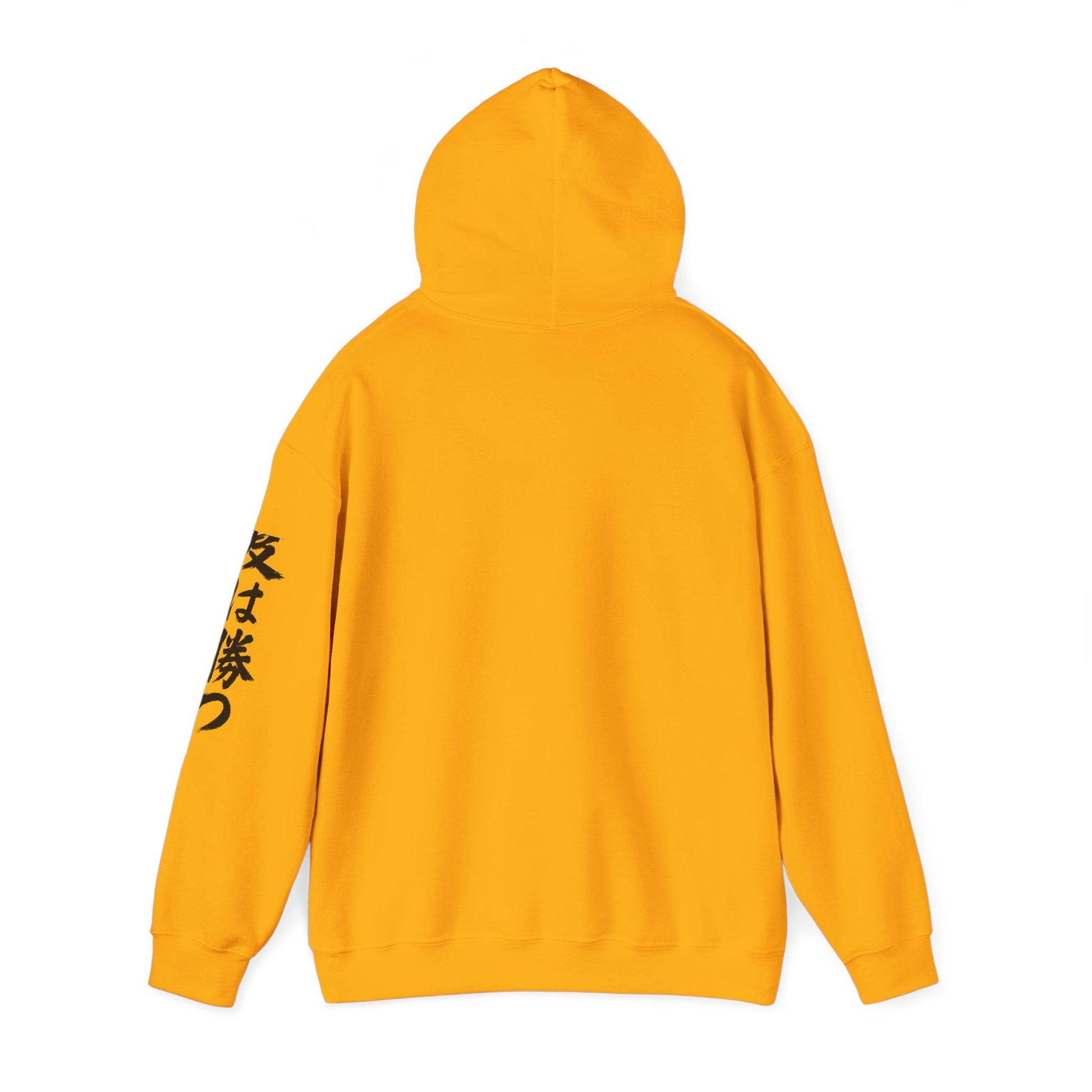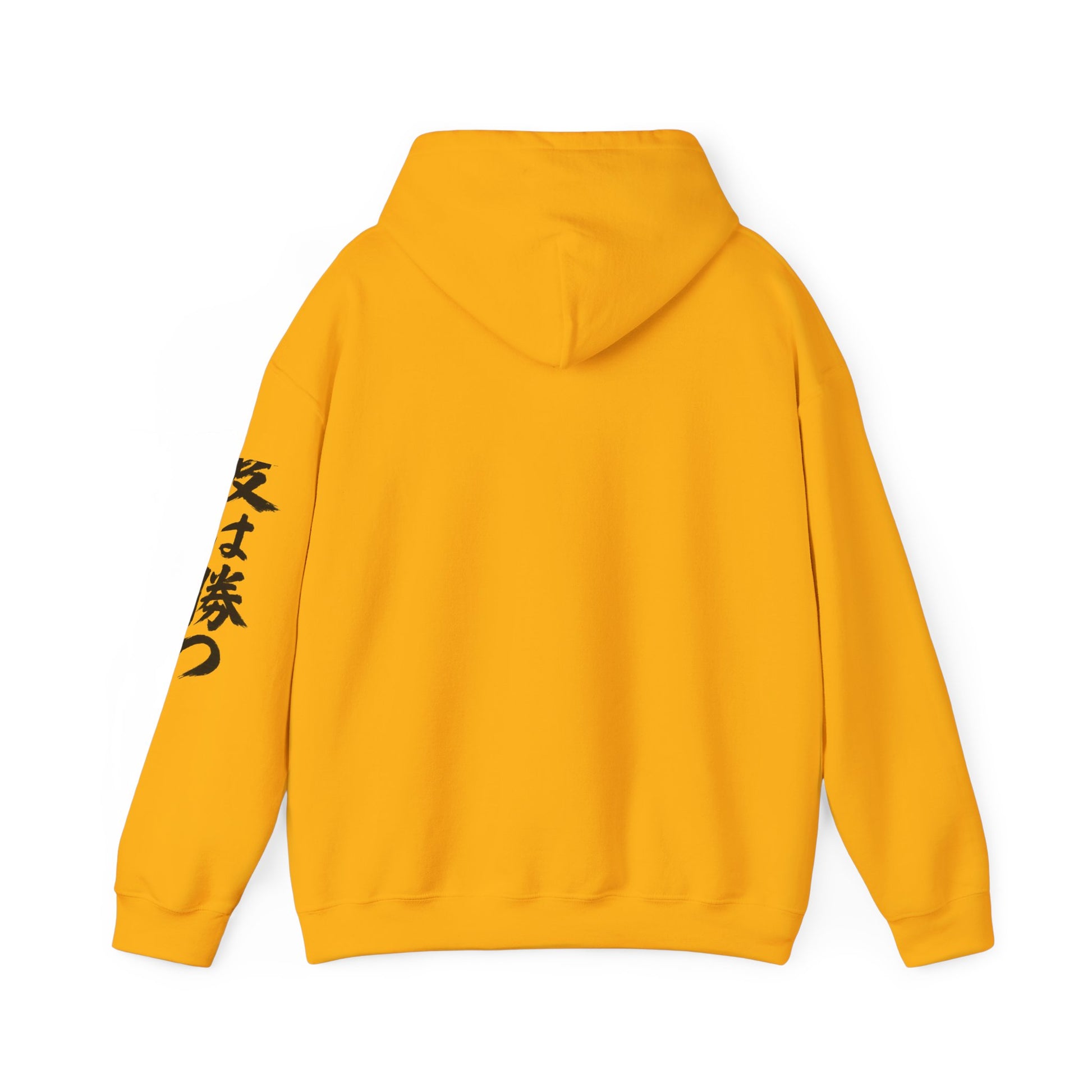On the left sleeve in Kanji is "Love Conquers All". A simple, yet powerful quote that goes great on the Heartbreak Kintsugi Hoodie.